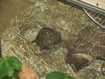 Sie war eigentlich die quirligste und gleichzeitig unser Problemfall. Irgenwie wuchs ihr Kiefer schräg und die Zähne nutzten sich nicht ab. Monatlich wurden diese beim Tierarzt gekürzt und sie wurde zusätzlich von uns mit Babybrei gefüttert. Trotz allem ist sie fast 6 Jahre alt geworden! |